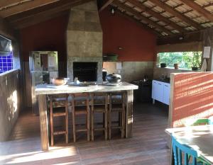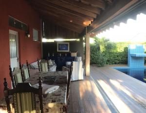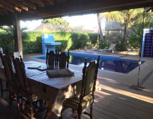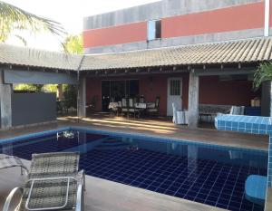 A cozinha planejada é espaçosa e funcional, permitindo uma experiência culinária prazerosa. A varanda ao fundo, integrada à área gourmet, é perfeita para momentos de lazer ao ar livre. A área de serviço completa, juntamente com um banheiro social adicional, uma despensa e um banheiro para funcionários, complementam os espaços do térreo. Não podemos deixar de mencionar a bela piscina em alvenaria com cascata e o encantador jardim com árvores frutíferas, que proporcionam um ambiente tranquilo e relaxante.