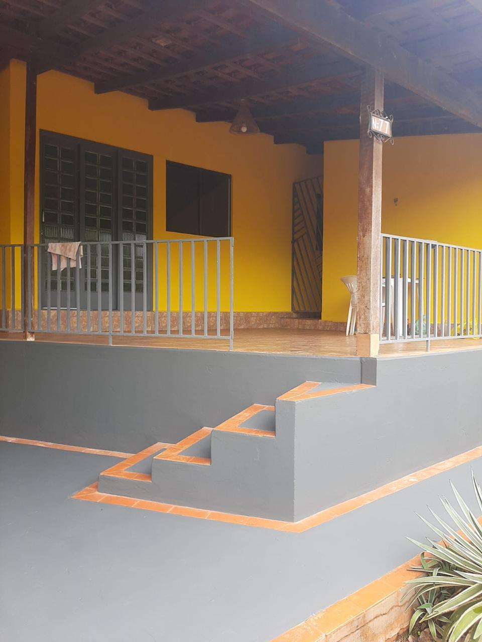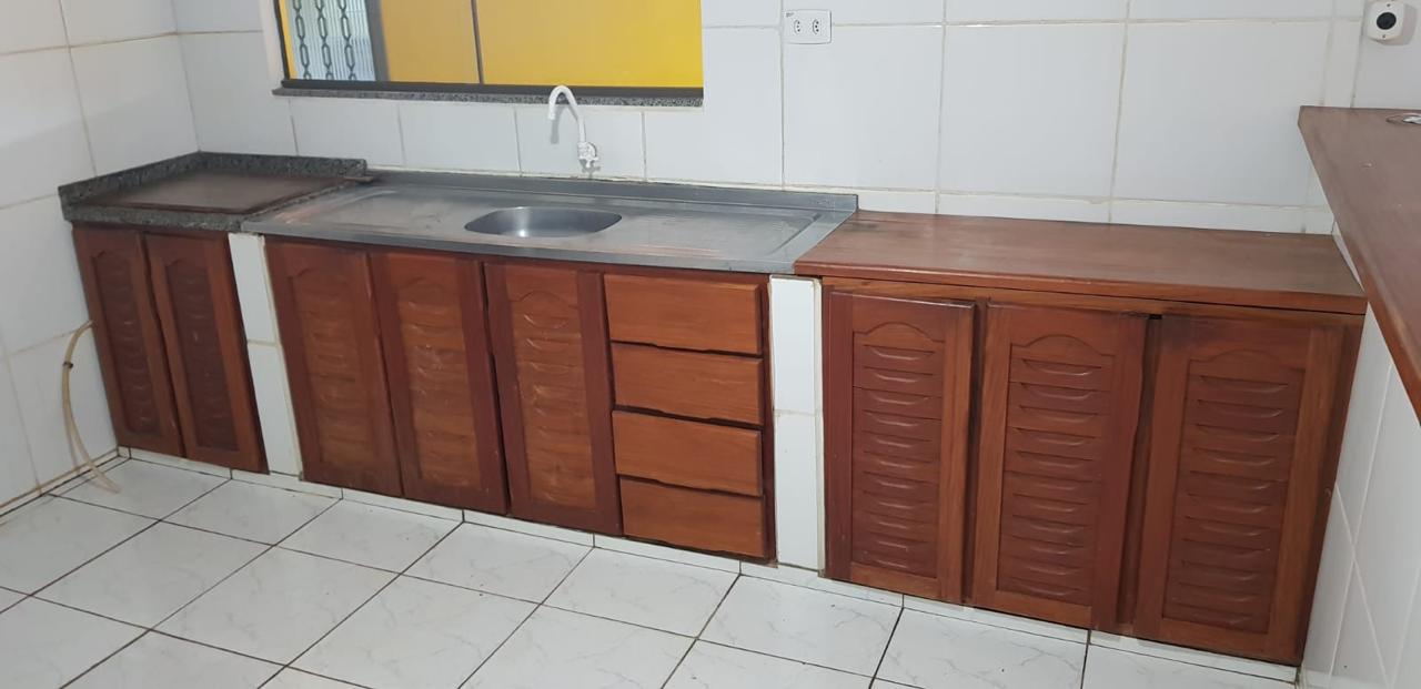 Área construída de 144,00 m² – contendo 01 sala grande, 01 cozinha americana com moveis em madeira de balsamo, 03 quartos, 01 banheiro social, varanda, área de serviço fechada, garagem e pergolado com parreira