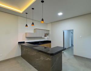 Área construída de 118,14 m² - 01 Suíte, 02 quartos, 01 sala, 01 banheiro social, cozinha com moveis planejados, garagem para 02 carros e área de serviço.